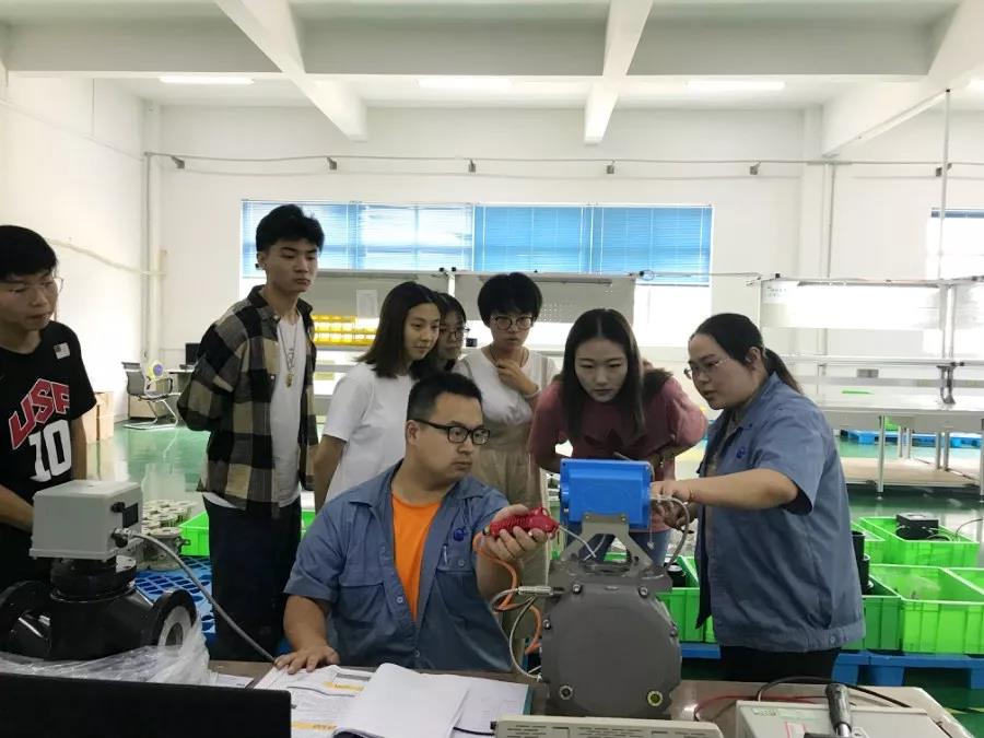 上海理工大學學生在城燃裝配車間觀摩渦輪流量計產品檢測過程